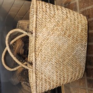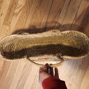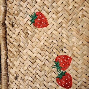 Vintage Look Woven Straw Tote With Embroidered Strawberries Spring Summer Beach