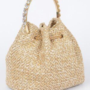 Faux Straw Bucket Bag W/stone Handle