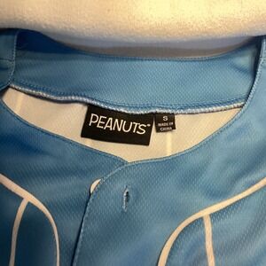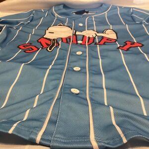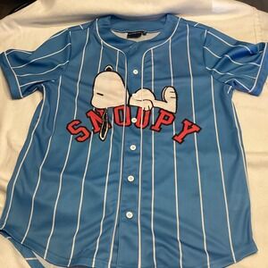 Peanuts Snoopy Baseball Jersey Blue Pinstripe Button Up Short Sleeve Small 50