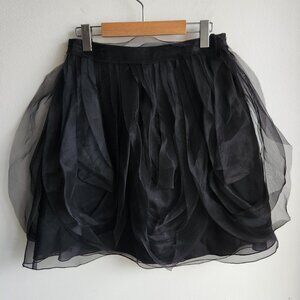 Emporio Armani, skirt, mini skirt, silk, organza, tulle, black, noir, sheer, semi-sheer, layered, sculptural, airy, lightweight, glam, glamour, glamorous, sexy, festive, evening, cocktail, party, chic, elegant, Italian, designer, luxury, luxe, premium, high-end, elevated, refined, striking, outstanding, occasion, night out, dressy, versatile, flirty, NWT, BNWT, new, never worn, feminine, Holidays, Christmas, xmas, New Year's Eve, distinctive