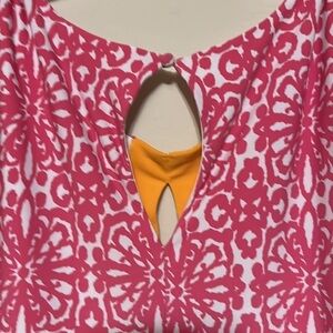 Jones sleeveless maxi dress. Pink design with pale orange trim and bead embellishments. Bodice lined . New without tag.size XL