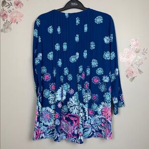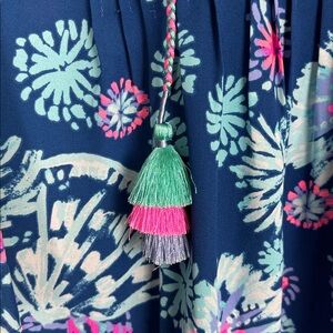 Lilly Pulitzer Blue and Pink Floral Blouse with Tassels - S