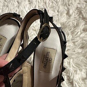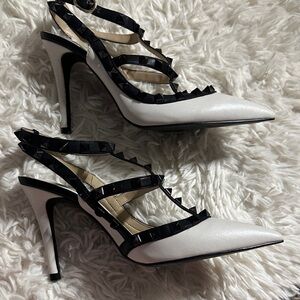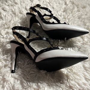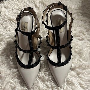 Chic Valentino heels with a white base and black studded straps. Perfect for elevating any outfit. Size 39 personally runs small (I’m normally 8 for reference) This is a Classic shoes that elevate any outfit. Never born, see the pictures if you have any questions please feel free to ask NO box 🤍