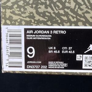 Air Jordan 3 Retro Family Affair Men's Size 9 Medium Olive/Sequoia DN3707 202
