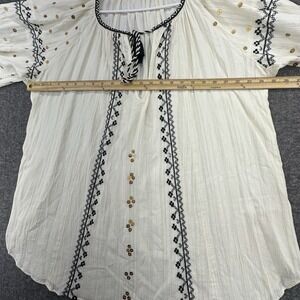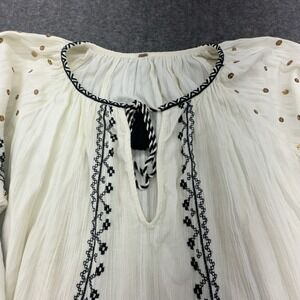 Free People Tallie Embroidered Sequin Boho Blouse Balloon Sleeve Tunic NWOT
