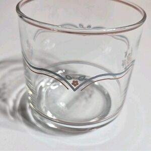 This vintage Corelle set of 6 English Breakfast 8 oz juice glasses features a charming pink and blue floral design, perfect for adding a touch of retro style to your kitchen or dining table. Made of glass, these round drinking glasses are ideal for serving juice or other beverages at all occasions. The set includes 6 juice glasses, each with a capacity of 8 oz, making it a practical and stylish addition to your glassware collection.