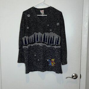 Vintage Disney Winnie the Pooh Winter Women Large Gray Sweater