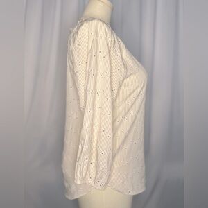 Loft Smocked Shoulder Pale Yellow Eyelet Women's Blouse (641)