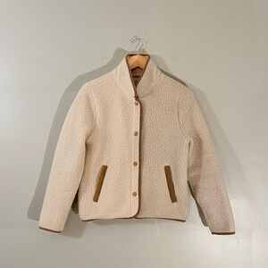 J.Crew cream tan vintage fleece Sherpa cozy button up teddy jacket winter layer