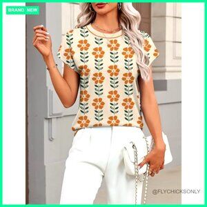 Summer Cap Sleeve Pullover Sweater, Viscose Crew Neck Blouse, Business Casual