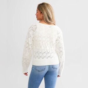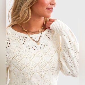 Z Supply Women’s Kasia Crochet Open Knit Sweater in Ivory Size L