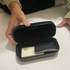 Coach Hard clam shell Black Glasses Case. Small marks on exterior, see pictures. Elegant black case by Coach. Ideal for eyewear protection. NWOT. Does have Coach card and eye glass wipe.