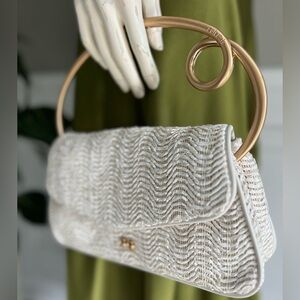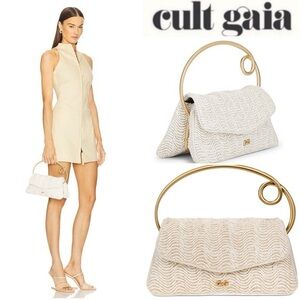 Cult Gaia Emily Top Handle Bag in Antique White Cream with Gold Handle NWT 498$
