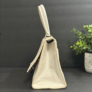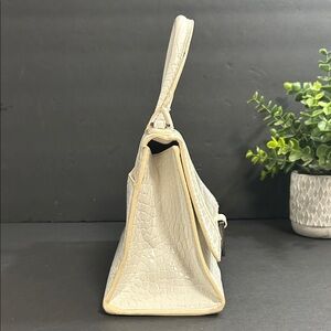 Elevate your style with this chic white croc-embossed satchel. Perfect for adding a touch of elegance to any outfit.