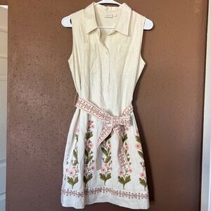 Spartina 449 Womens Cream Floral Embroidered Sleeveless Shirt Dress Small