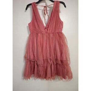 Le Lis Babydoll Dress Rose Tulle Ruffle Mini Party Cocktail Size M NWT