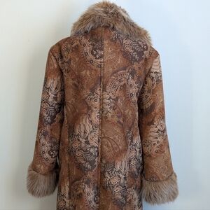 90s Does 70s VTG Penny Lane Trench Coat Afghan Paisley Print Faux Fur Trim 18