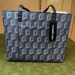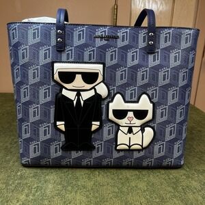 Karl Lagerfeld Paris Choupette Cat Maybelle Tote Bag Purse Blue Geometric NWT