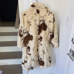Anthropologie Maeve Grand Glam Faux Fur Coat Long Jacket in Cream and Brown