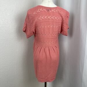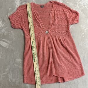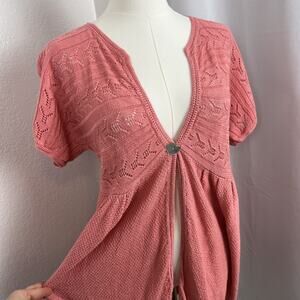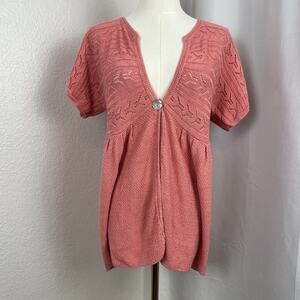 J Jill Cardigan Womens Medium Pink Babydoll Open Crochet Linen Blend Cottagecore Short Sleeve