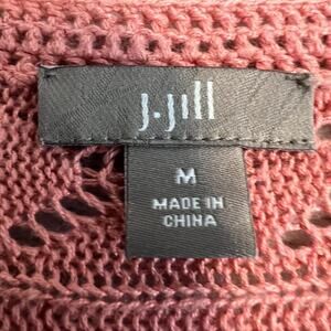 J Jill Cardigan Womens Medium Pink Babydoll Open Crochet Linen Blend Cottagecore