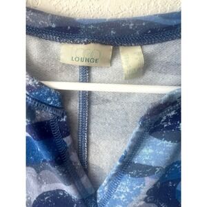 LOGO Lounge Blue Abstract Print Top Size XS Long Sleeves Pockets Athleisure