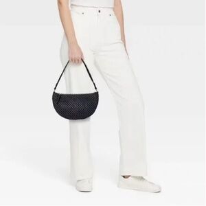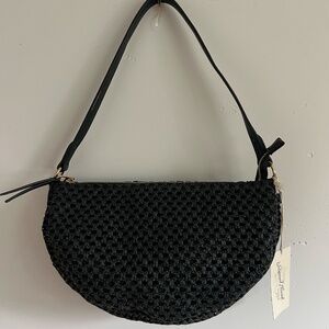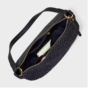 NWT Universal Thread Straw Half Moon Shoulder Bag Black Woven Target