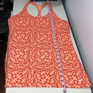 Nike racerback tank top in great used condition. Light and dark orange design. Poly/spandex blend. See photos for measurements.