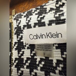 Calvin Klein Houndstooth Sheath Short Sleeve Black & White Gold Zipper Dress 2