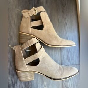 Beast Fashion Ankle Boots Cutout Buckle Strap Beige Booties Size 7.5