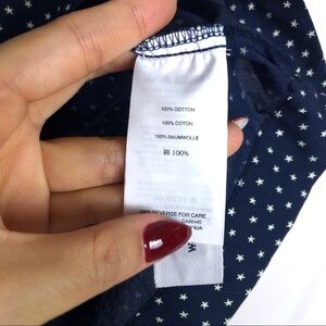 navy blue blouse white polka dots with ruffle