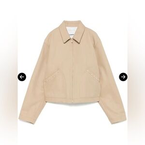 This shirt jacket from SANDRO features a concealed front zip fastening, two front pouch pockets, full lining. The jacket is cropped and collared.