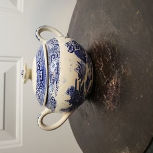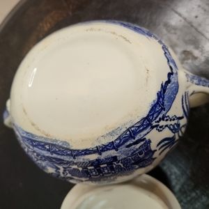 Antique Blue and White Transferware Sugar Bowl with Lid Unmarked