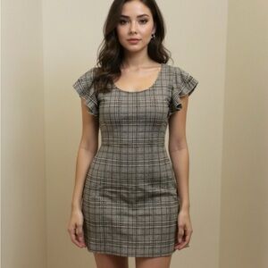 Sweet and flattering plaid mini dress with feminine ruffle sleeves and comfortable stretch. Perfect for brunch, date night, or layering with boots in the fall.