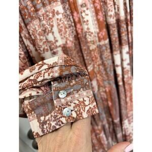 Olivaceous Women's Patchwork Tiered Midi Dress Boho Earthy Rust Beige Size Large