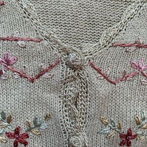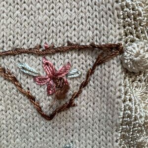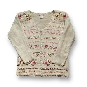Vintage Cream Cardigan with Pink and Yellow Floral Embroidery
