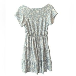 No Boundaries Juniors Tiered Jersey Babydoll Mini Dress Size Small Blue & White