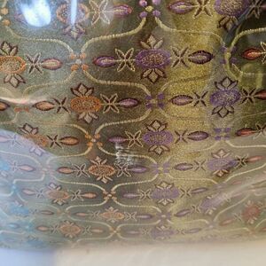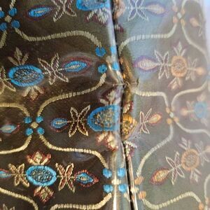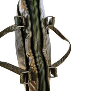 17.5 X 13 X 6. Polyester/cotton covered in plastic, 1 large outside pocket, 3 inside slip pockets. Small area where the covering is cracked/crinkled- can feel it more than see it. Please see pictures. Great condition. Open to reasonable offers.