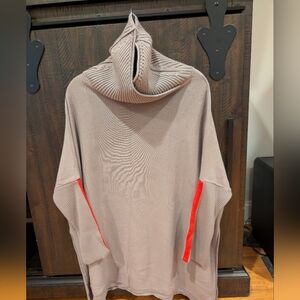 ribbed sleeves and fold over neck, side slits