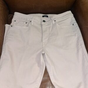 Stylish light pink jeans with a classic design. Features a back pocket and silver rivets. Express jeans have been worn once. There is a mark where the sticker was, but these jeans have never been washed. Essentially new without tags. Great jeans for spring/summer. Best way to describe the color is a dusty rose/carnation