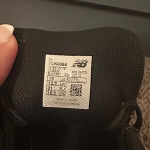 Stylish black sneakers for kids. Comfortable and durable. Perfect for everyday wear. Good for a little girl or little boy. On one of the shoes the shoe strings are unraveling and the other one is still good. Shoes have the original box.
