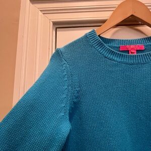 Bright blue crew neck sweater. Soft and stylish. Ideal for layering.