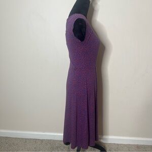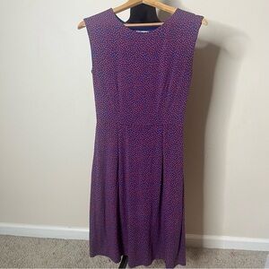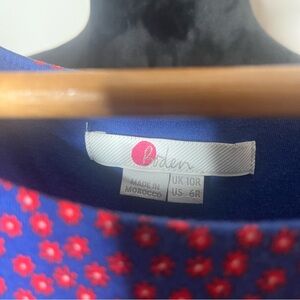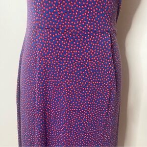 Women’s Boden blue and red floral print jersey knit sheath midi dress with round neckline and front pleat detailing, viscose, elastane size 6R~P2P 16” waist 28” length 40”~good condition #casual#brunch#officecasual#travel