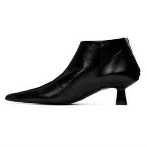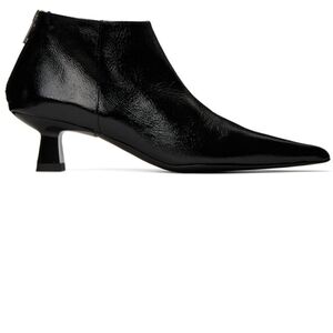 New Ganni Soft Pointy Crop Naplack Back Zip Kitten Heel Black Boots Size 8 US