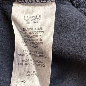 Material: 57% Cotton 43% Polyester sueded washed fleece, 250 g/m² (7.4 oz/yd²).