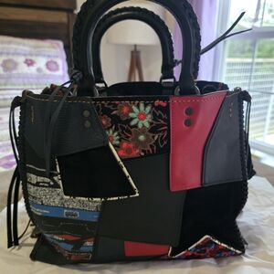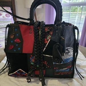 Vibrant Coach satchel with a striking patchwork design. Features a mix of colors for a bold statement. Ideal for adding flair to any outfit. Please see all photos for complete description and size ! Bag is in very very good condition. No notable damages or odors.