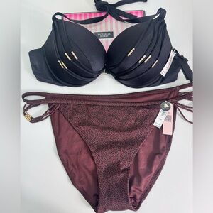 Victoria's Secret Black and Maroon Bikini Set Sz 36DD /M NWT