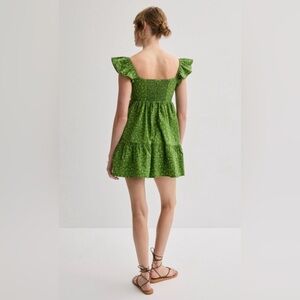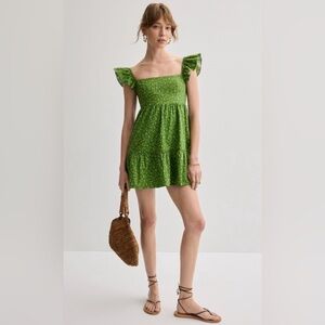 A Playful Mini Dress Adorned with Ruffled Sleeved and a Relaxed Empire Waist. Square Neck. Cap Sleeves. Fitted Bodice with Back Smocking. All-Over Micro Flower Print. Pair It with Chunky Sandals for a Sweet Yet Edgy Daytime Look.