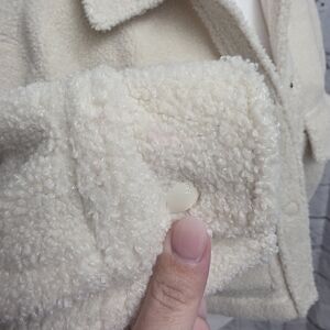 Soft and cozy teddy jacket. Features front pockets and snap buttons. Perfect for layering.