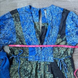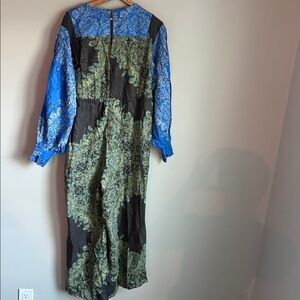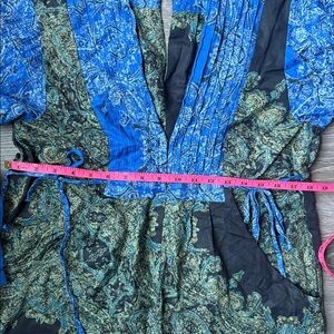 Blooming fields paisley jumpsuit by Free People has balloon sleeves, button at back of neck, side pockets and side ties for a perfect fit. Comfortable and stylish